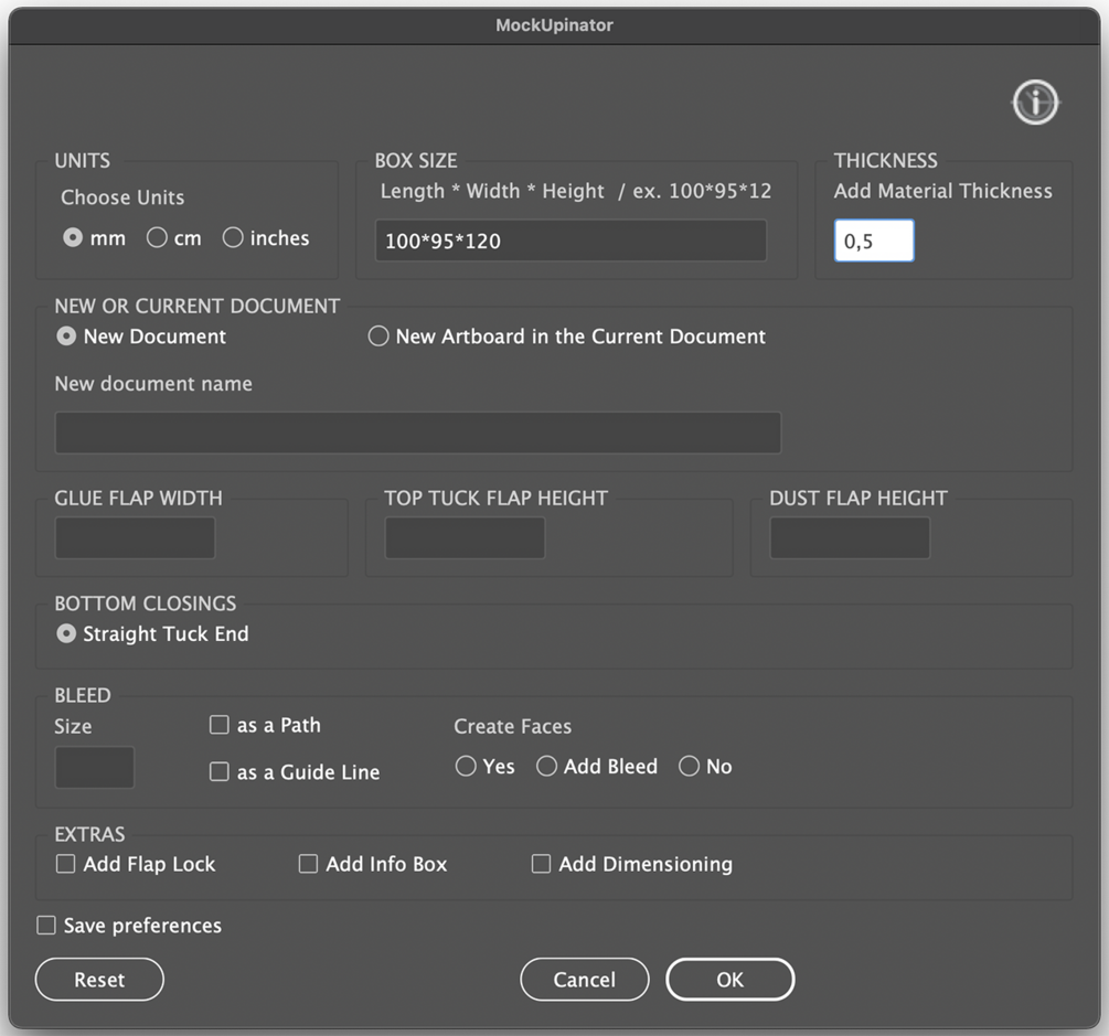 The MockUpinator script creates a die-cut line in seconds within Adobe Illustrator. It's easy to use and provides some additional customizable features with a graphical user interface to help you get your packaging done efficiently. Even though a die-cut line created with the Mockapinator should be seen as a mock-up and not as a technically engineered die-cut, it can significantly improve your workflow.